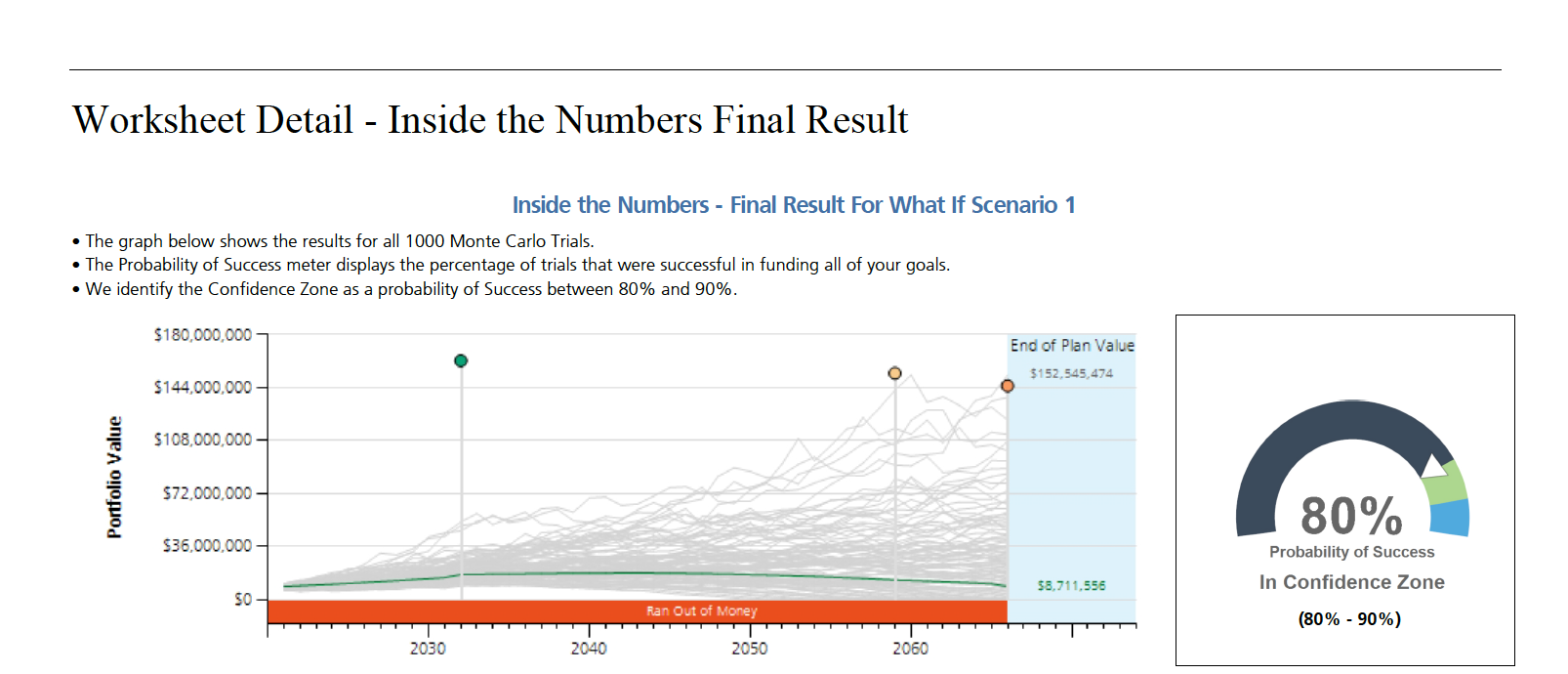 Probability-based analysis that helps frame how your plan may perform across different market environments, rather than relying on a single projection.